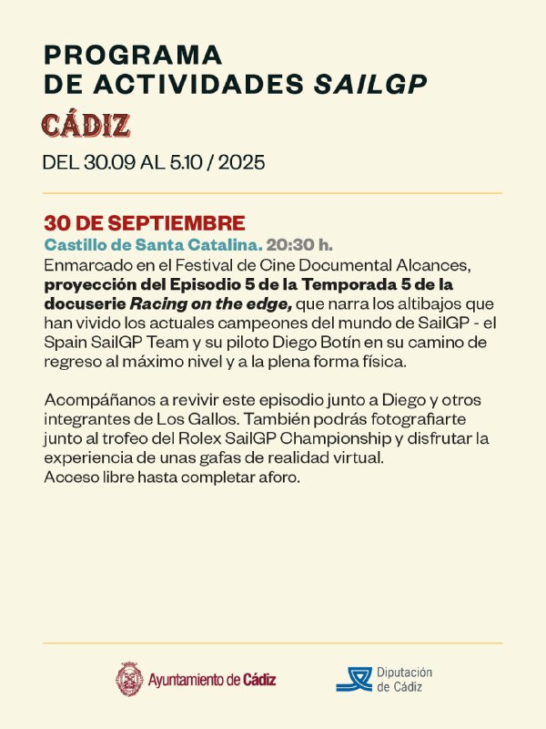 📅 Hoy miércoles 1 de octubre, encuentro con los integrantes de la Spain SailGP Team en la plaza de San Juan de Dios, desde las 1...