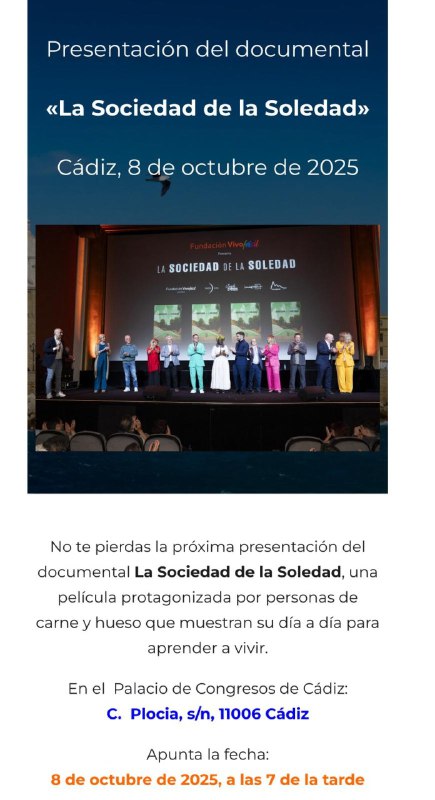 🔵 Presentación del documental 'La sociedad de la soledad'📅 Este miércoles 8 de octubre, a las 19 horas📍 En el Palacio de Congres...