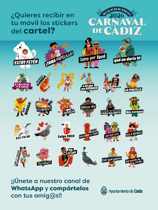 😉 ¿Quieres recibir en tu móvil y compartir con tus amig@s los stickers del cartel del Carnaval de #Cádiz 2026?