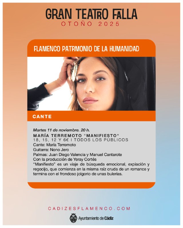 📅 Este martes, en el Gran Teatro Falla de #Cádiz 🔵 Manifiesto, de María Terremoto✅ Flamenco Patrimonio de la Humanidad 💻 www.cad...