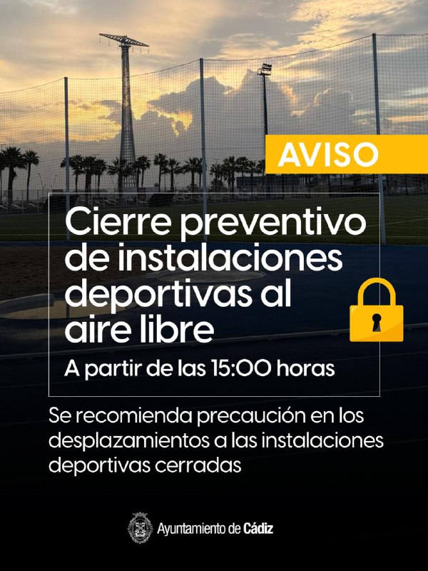 🚨 HOY jueves 13 de noviembre #Cádiz 🛑 Cierre preventivo de instalaciones deportivas al aire libre🛑 Cierre preventivo del Parque ...