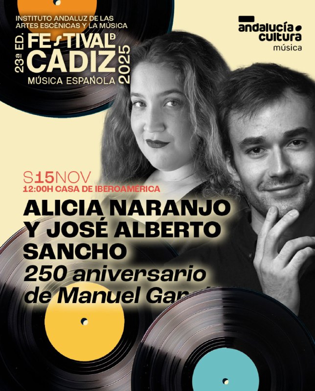 📅 Este sábado 15 de noviembre✅ Festival de #Cádiz de Música Española⏰ A las 12 horas en la Casa de Iberoamérica