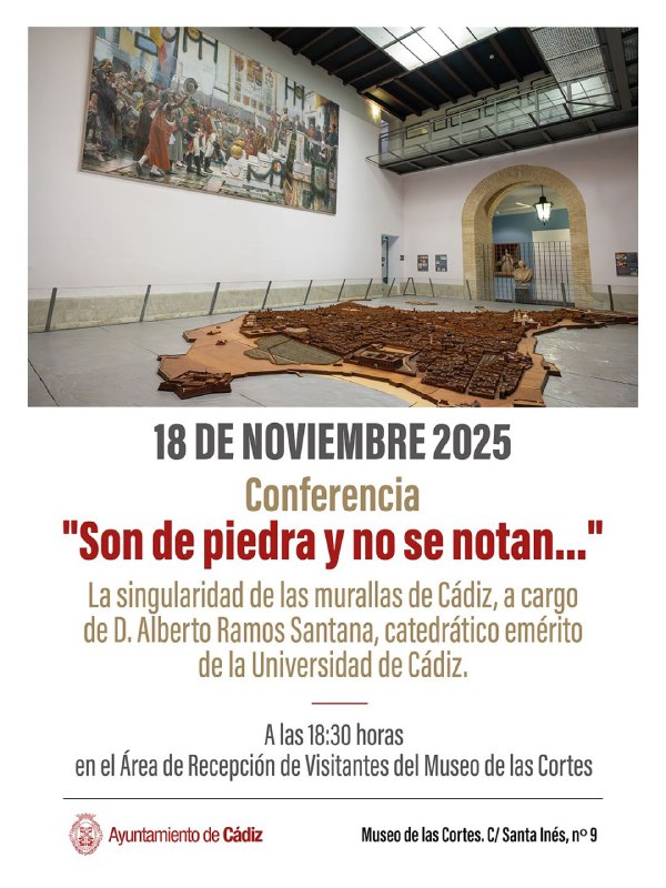 📅 Este martes 18 de noviembre ⏰ A las 18:30 horas en el Museo de las Cortes de #Cádiz ✅ Conferencia 'Son de piedra y no se notan...