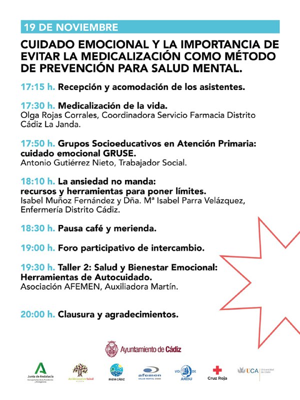 ✅ Este es el programa de hoy dentro de las Jornadas de Salud Mental #Cádiz 📅 Miércoles 19 de noviembre Puedes seguirlas también ...