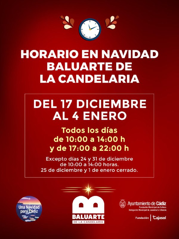 📅⏰ Recuerda el horario de la Navidad en el Baluarte de la Candelaria😃 Vive y disfruta de 'Una Navidad para #Cádiz'