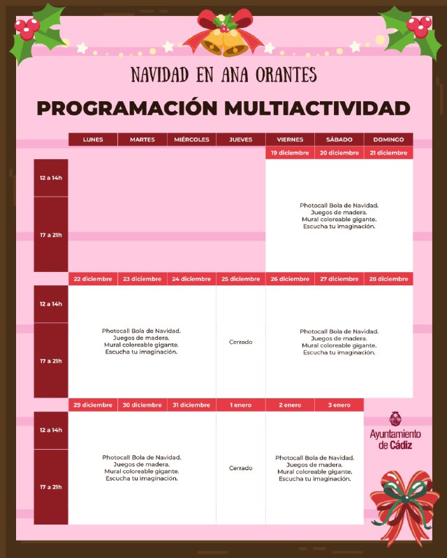 📅⏰ Horarios del alumbrado y espectáculo de luz y sonido 😉 Guarda y comparte esta info'Una Navidad para #Cádiz'