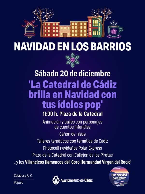 📅 Este sábado 20 de diciembre📍 En la plaza de la Catedral✅ 'Una Navidad para Cádiz' con tus ídolos popY con los villancicos fla...