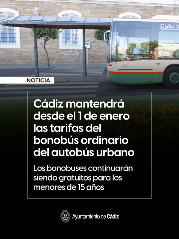 ✅ Igualmente, se mantiene la gratuidad del bonobús para el transporte urbano para la población menor de 15 años, reforzándose el compromiso con la juventud, las familias gaditanas y el fomento del uso del transporte público