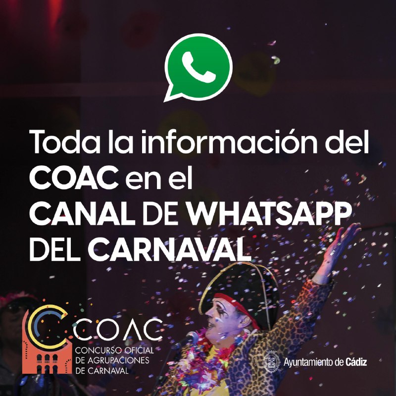 📲 Recuerda que toda la info del Carnaval, ahora que comienza el #COAC2026, la tienes en nuestra cuenta de WhatsApp #Cádiz Te pue...