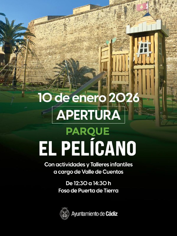 🚨 Este sábado 10 de enero, apertura del Parque El Pelícano de #Cádiz, con actividades y talleres infantiles