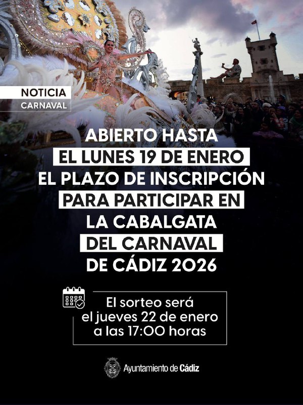 😃 Ya está abierto el plazo para participar en la Gran Cabalgata del Carnaval de #Cádiz 2026 📅 Las personas interesadas en ocupar...